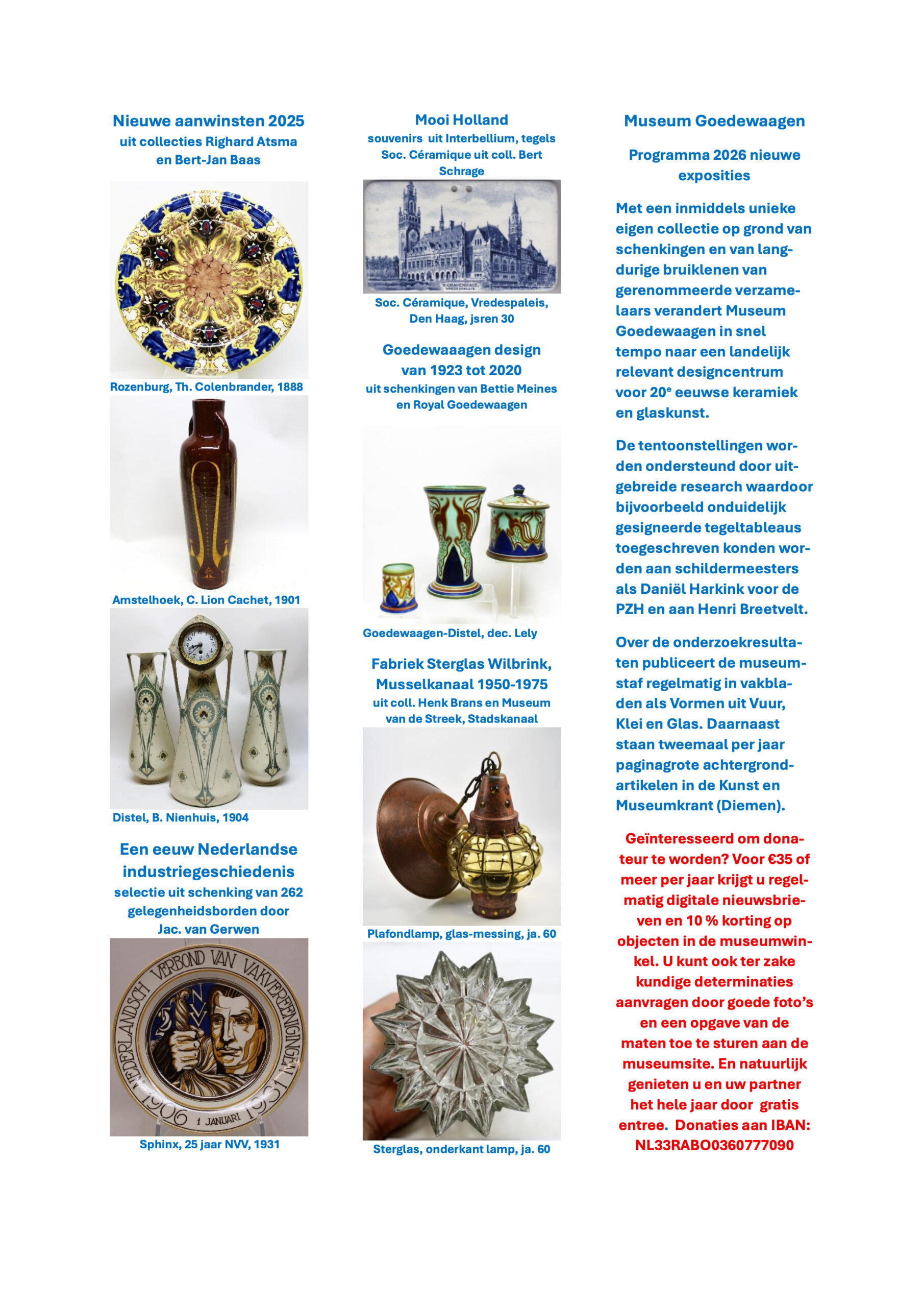 De aardewerkfabriek Royal Goedewaagen geeft geen nadere informatie over wat deze fabriek en de acht andere bedrijven die in het Goedewaagen-concern opgegaan zijn, in de afgelopen eeuwen gemaakt heeft. Het museum doet dat sinds 1998 wel en geeft voor zover mogelijk ook grondige informatie over gedecoreerd Nederlands aardewerk uit de periode na 1875, het begin van industriële tijdperk voor de keramiek. Het niet door enige overheid gesubsidieerde museum vraagt voor deze publieksservice van online determinaties en taxaties een bescheiden financiële vergoeding. Zie voor de voorwaarden determinaties en taxaties.